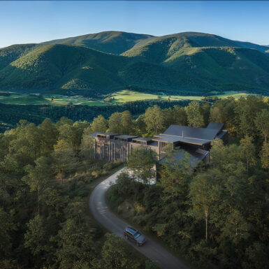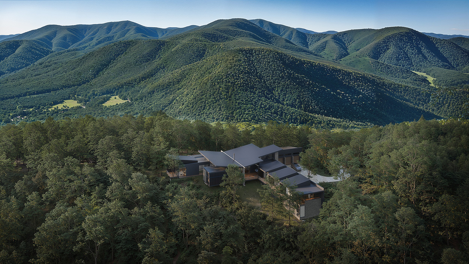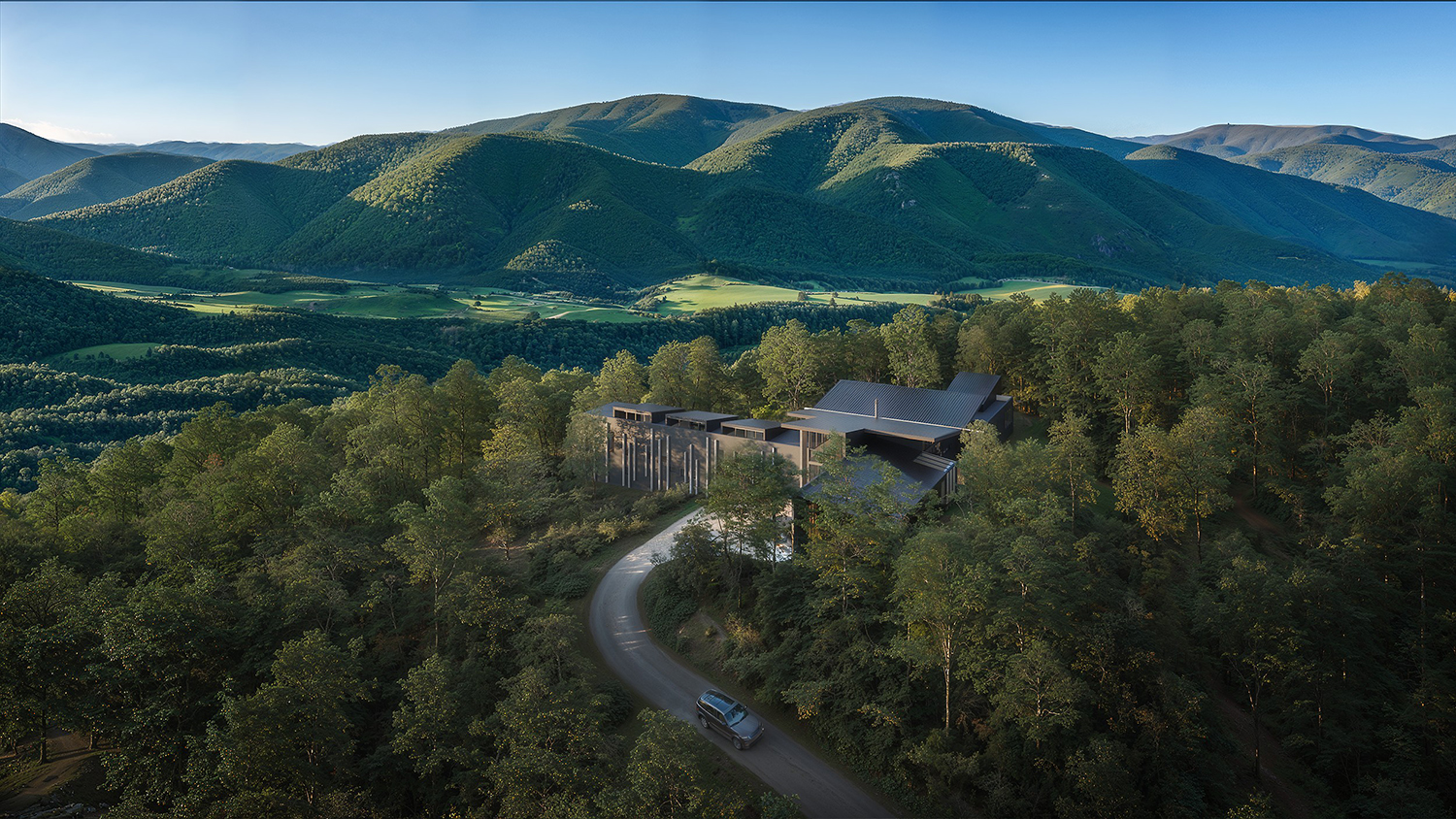 Perched atop the rolling crest of the Horseshoe Mountain range near Charlottesville, Virginia, Casa Mar-i-Posa will emerge as a sculptural retreat—an architectural ode to family, landscape, and light. Envisioned as a modern mountain sanctuary for a large extended family, the home is sited with quiet intention on a knoll within a 170-acre protected expanse of forest and meadow.