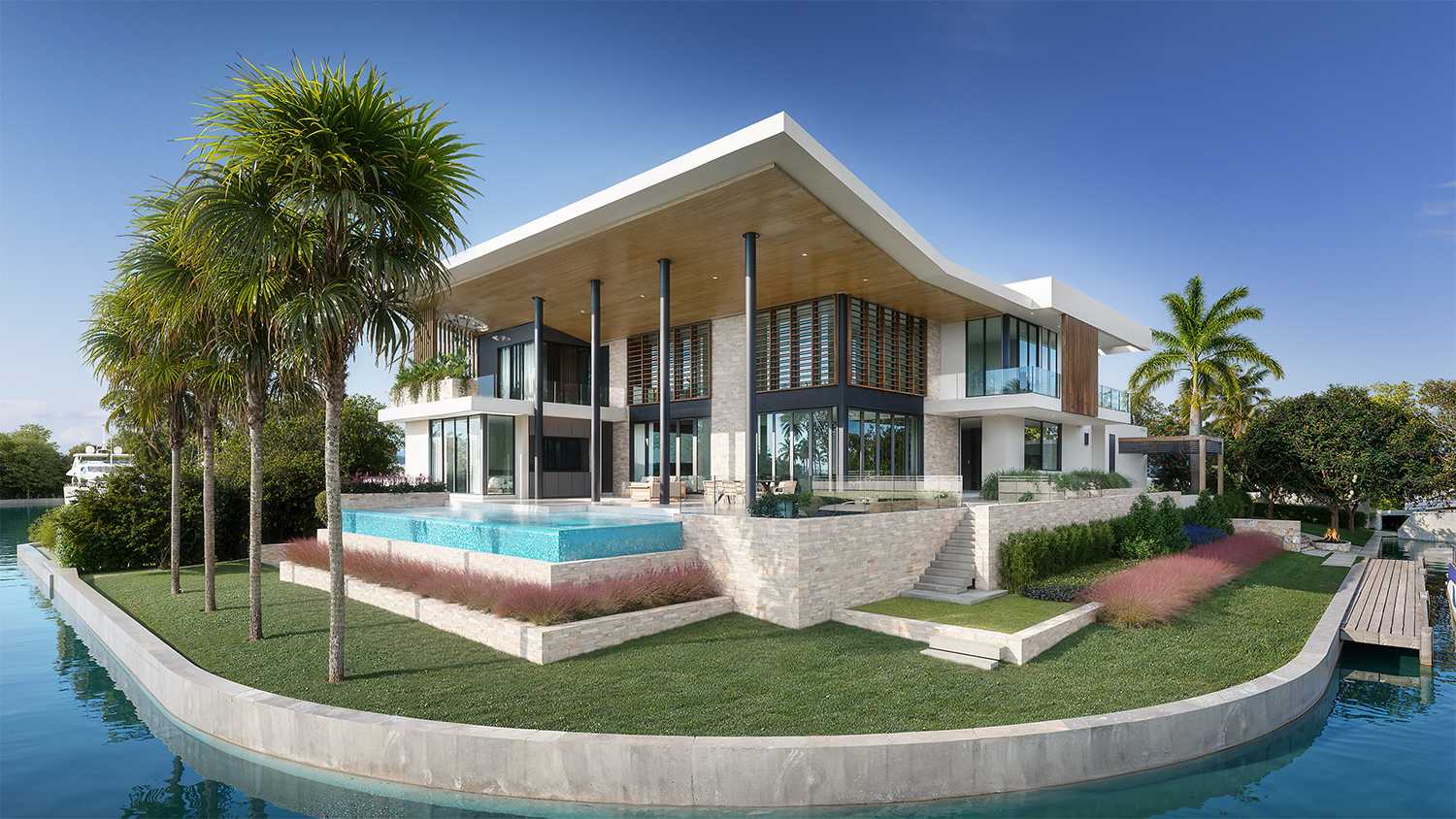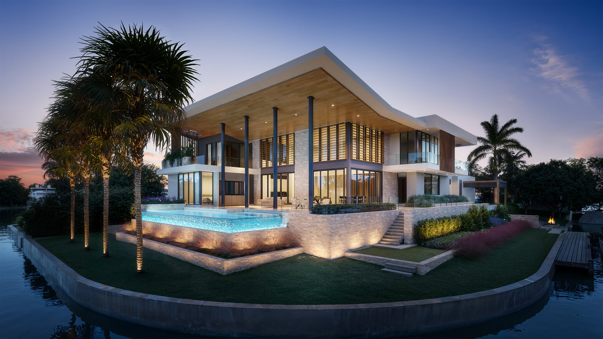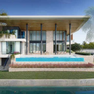 Nestled in the heart of Gables by the Sea, one of Coral Gables’ most storied waterfront enclaves, Casa Sol will stand as a contemporary expression of Tropical Modernism, seamlessly integrated with its idyllic surroundings. The residence is envisioned as a sanctuary of light, air, and water, drawing inspiration from the unique geography of its site, a property that embraces the waterway on two sides, offering sweeping south and southeasterly views of the tranquil and ever-changing maritime landscape.