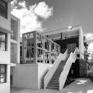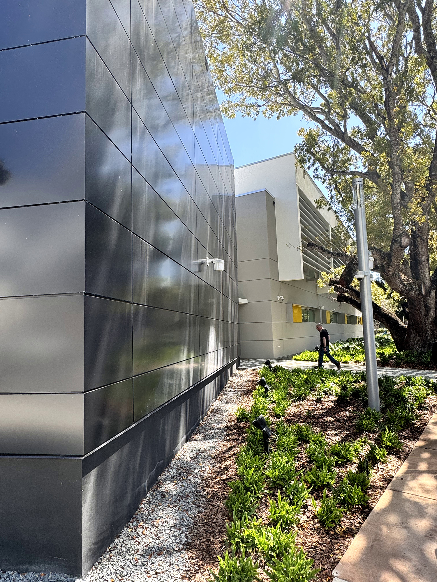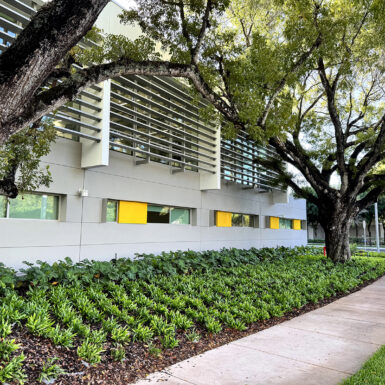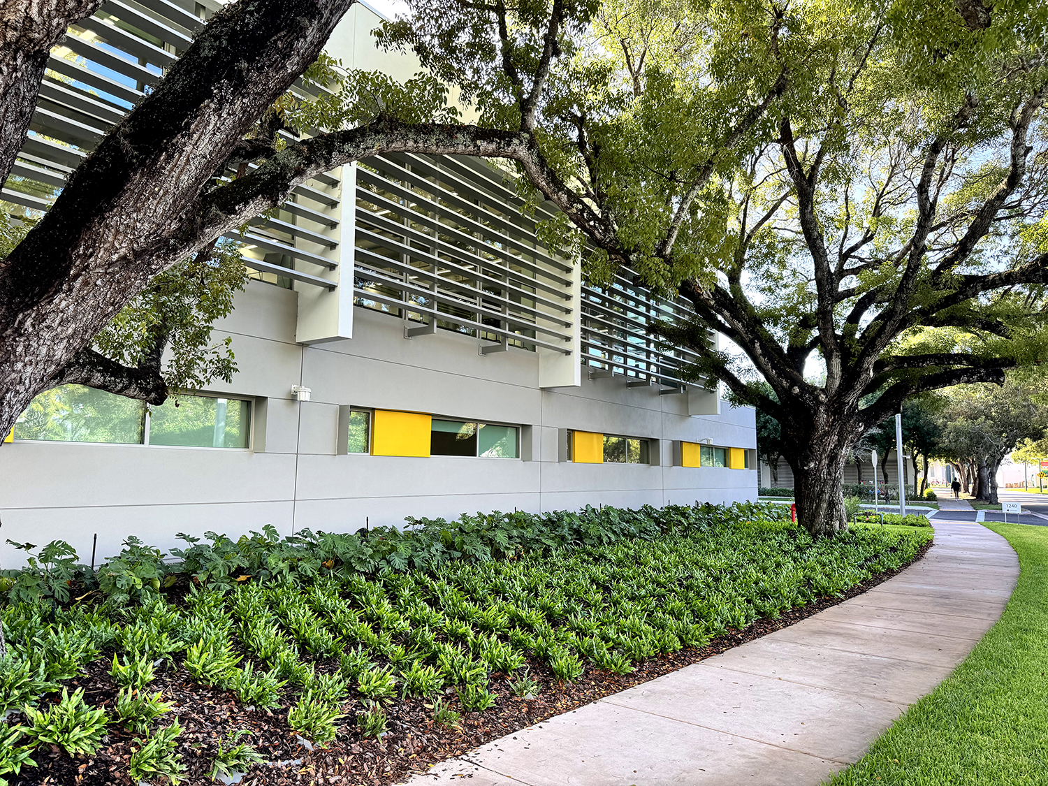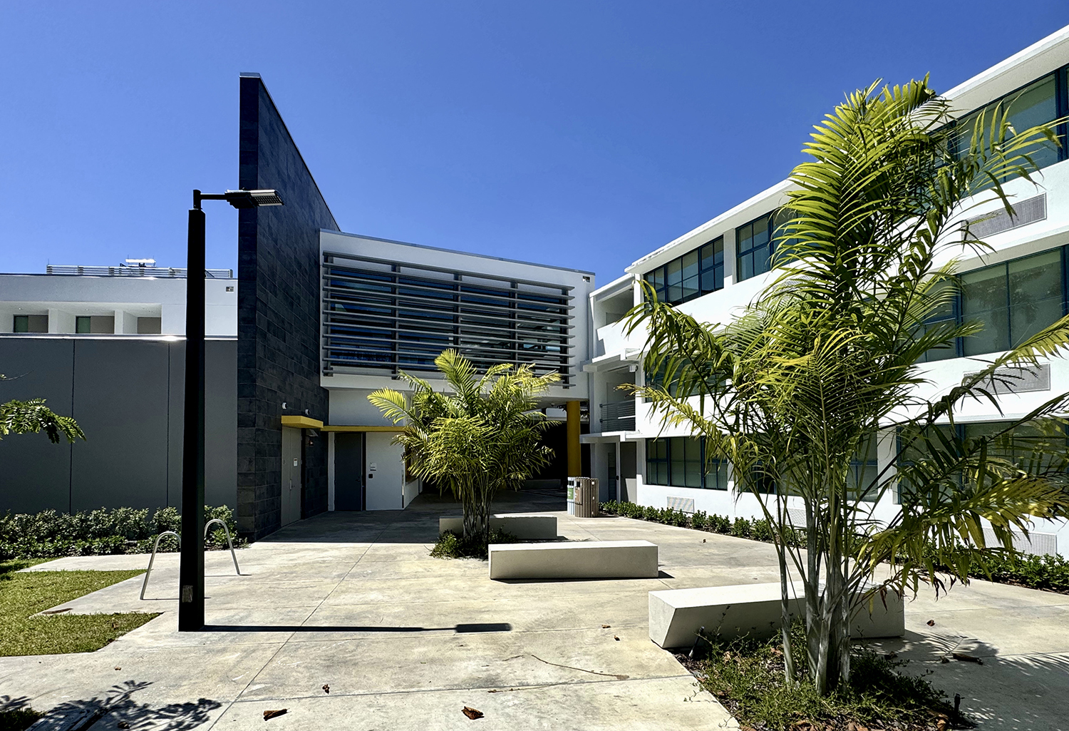 The new Theatre Arts Building is sited next to the historic Pentland Building, designed by Marion Isadore Manley, FAIA. She was the second woman architect licensed to practice architecture in the State of Florida and the 13th female member of the American Institute of Architects at the time. Ms. Manley was part of the design team that developed the UM Campus Master Plan and collaborated on the design of the UM Ring Theater Building.